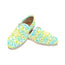 Yellow Aqua Spots hand drawn digital art design. A fresh take on the usual animal print. Flat slip on type. Personally worn and tested. Very light shoes. 14.11 oz. High quality canvas and rubber. Tan coloured front insert that matches the soles allowing you to slip them on and off easily. Suitable for daily wear. Check the size chart below. $10 shipping worldwide.  Australian sizes are the same as American sizes.